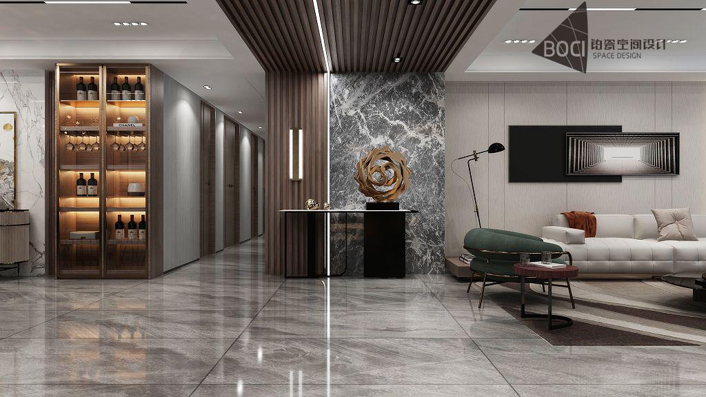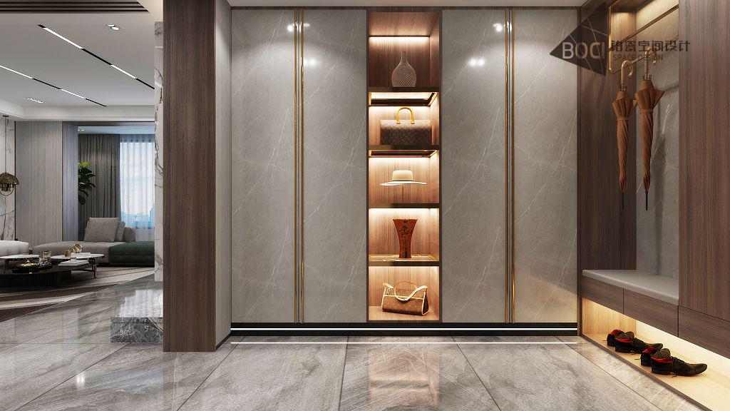 • 光影 从入户的大门进入空间,入户的鞋帽柜穿插着展示的开放搁架,主人的收藏品从一进门的开始就可以展示。就像雕刻,有了亮面与暗面,才有了立体感和艺术感,空间亦是如此,经过设计手法的雕琢,空间才变得更加立体且独特。中性色并非只有理性与睿智,其中隐藏的缱绻之意总是在不经意间流露,在生活的日积月累之...