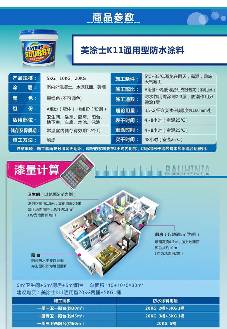 首页 > 材料展厅 > 美涂士漆防水涂料 K11通用型