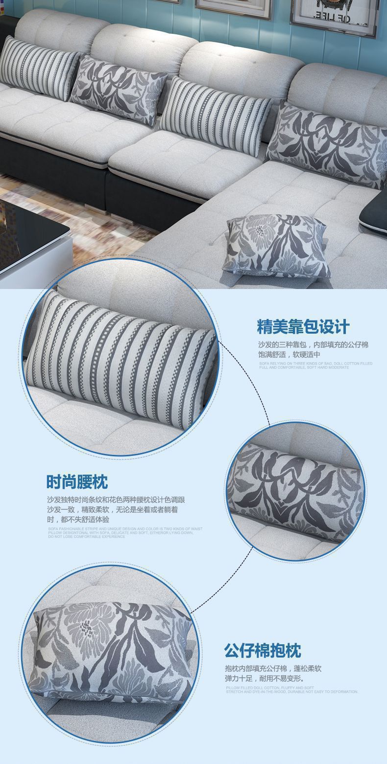 首页 > 材料展厅 > 卡菲纳简约现代布艺沙发大小户型客厅家具转角L型可拆洗组合沙发