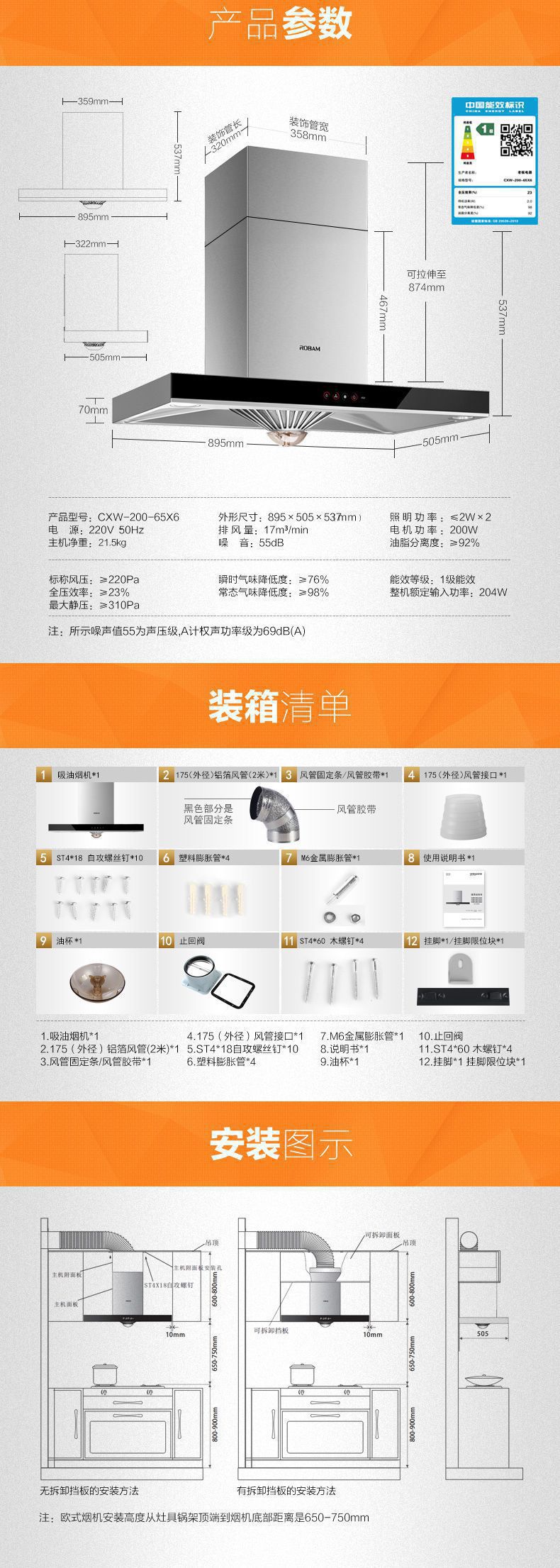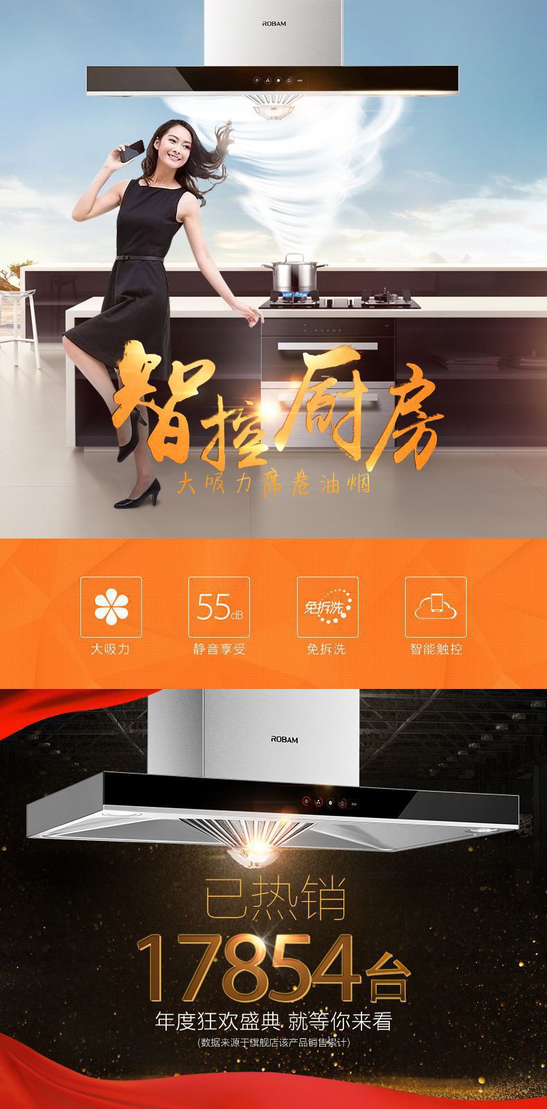 首页 > 材料展厅 > Robam/老板65X6+9B17时尚触控大吸力智能抽油烟机燃气灶烟灶套餐