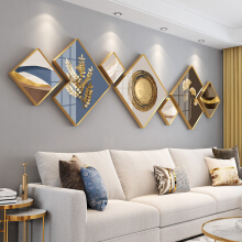 轻奢高档装饰画客厅沙发背景墙挂画现代简约大气晶瓷画家庭后面的墙上壁画抽象艺术免打孔北欧风格室内墙画 金枝玉叶-金色框(尺寸:266*70.7cm)