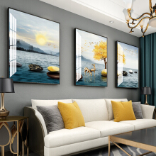 首页 > 材料展厅 > 现代简约装饰画家庭客厅沙发后面的墙上挂画轻奢高档晶瓷画招财风水山水三联画家居软装时来运转背景墙壁画 A-鹿迎朝阳-黑色框 60*80cm