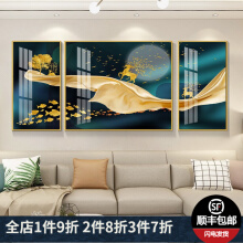 轩逸 客厅装饰画沙发背景墙壁画麋鹿抽象轻奢晶瓷画北欧卧室三联挂画 福鹿生财A款 左右35*50中50*70cm晶瓷画/铝合金色色框