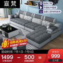 首页 > 材料展厅 > 宣梵简约布艺沙发组合套装大小户型可拆洗乳胶功能布沙发现代客厅整装家具 三人位【配两个布凳】 旗舰版海绵座包【颜色备注】