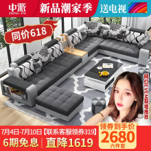 中派 沙发 现代布艺沙发可拆洗客厅沙发组合 六件套