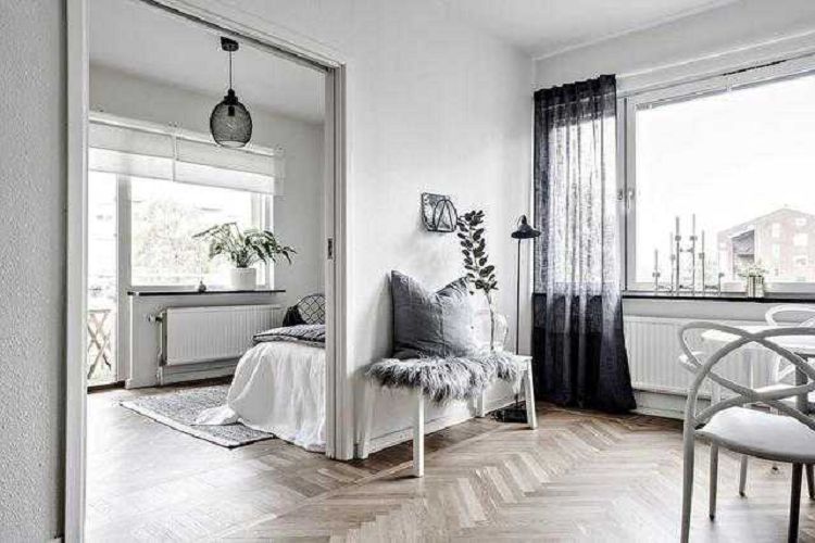 黑白两色搭配并不是说客厅里只使用这两种颜色,其实还有一些颜色可以加入进来,但是黑色和白色是主要颜色。这两种颜色主要体现在墙壁,地板,家具上。墙壁和地板是白色,家具可采用黑色或者白色。不过,如果室内只使用这两种颜色也许会造成特别强烈的冲击感。为了解决这个问题,最好的办法是加入灰色作为过渡。比如加入灰色地毯,灰色窗帘等。