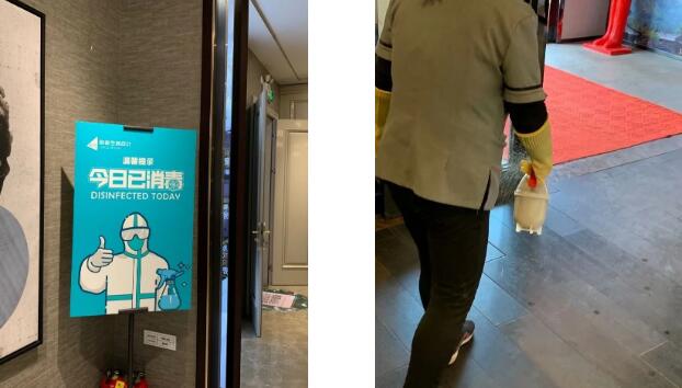 随着下班时间的来临,保洁阿姨再次进行消毒