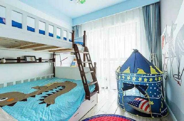 3.四室一厅装修风格的时候,美式风格特点就是休闲不羁。客厅宽敞;卧室则比较温馨,强调功能性和舒适性,同时也会用很多布艺来布置;书房实用装饰丰富。