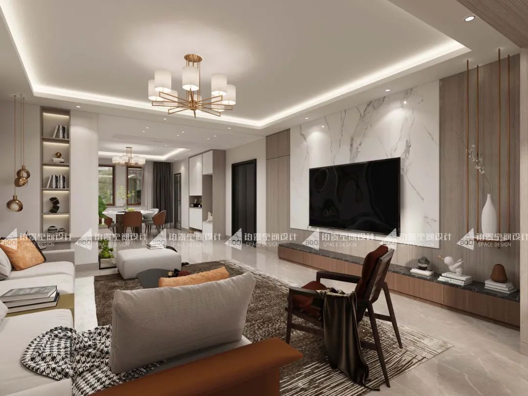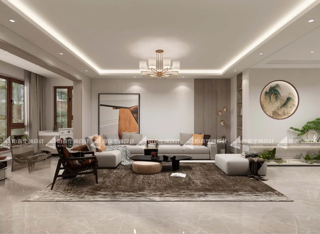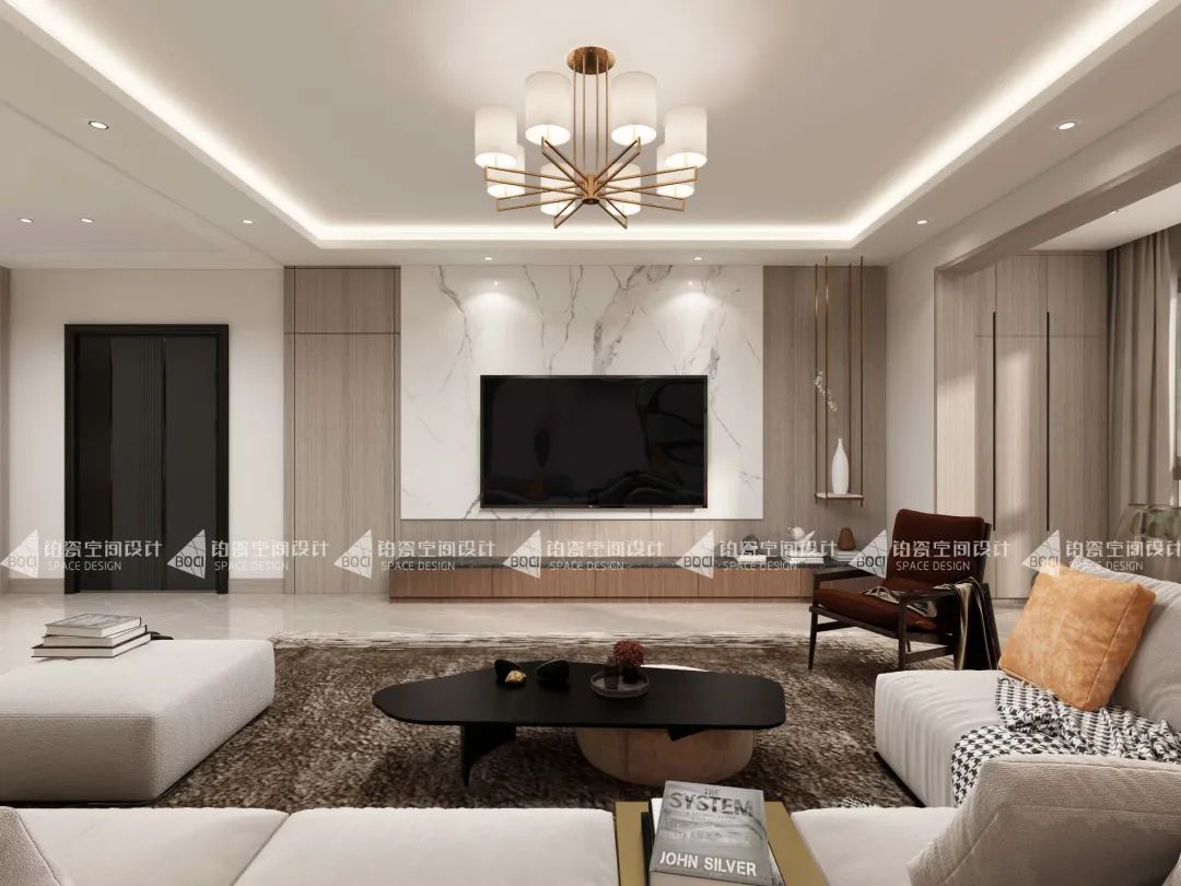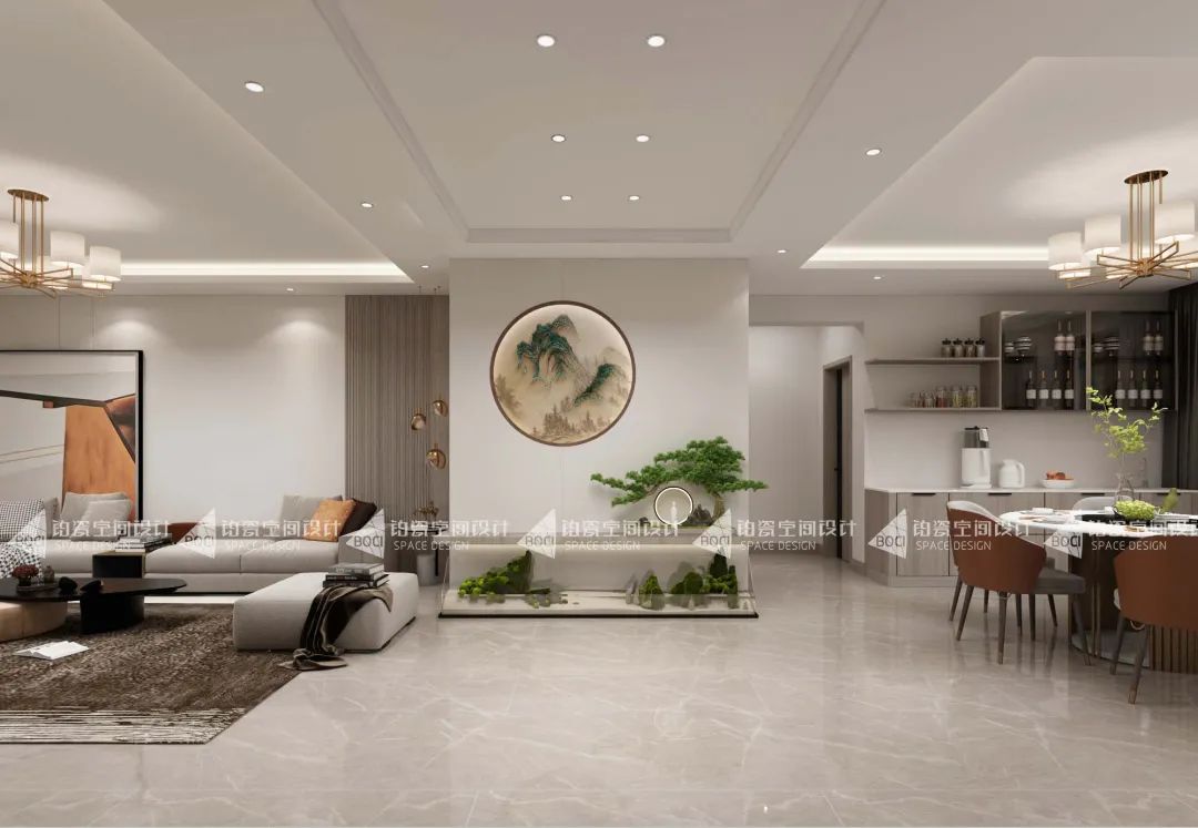 铂瓷案例赏析丨新中式邂逅现代简约,160㎡大宅呈现质感与意境的双重极致