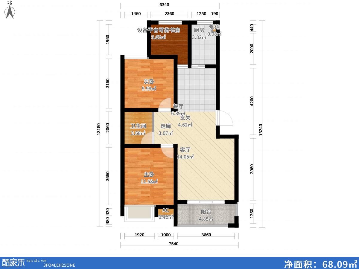套内面积: 68.09平方米