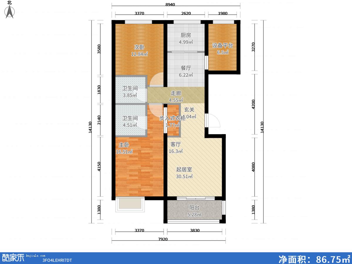 套内面积: 86.75平方米