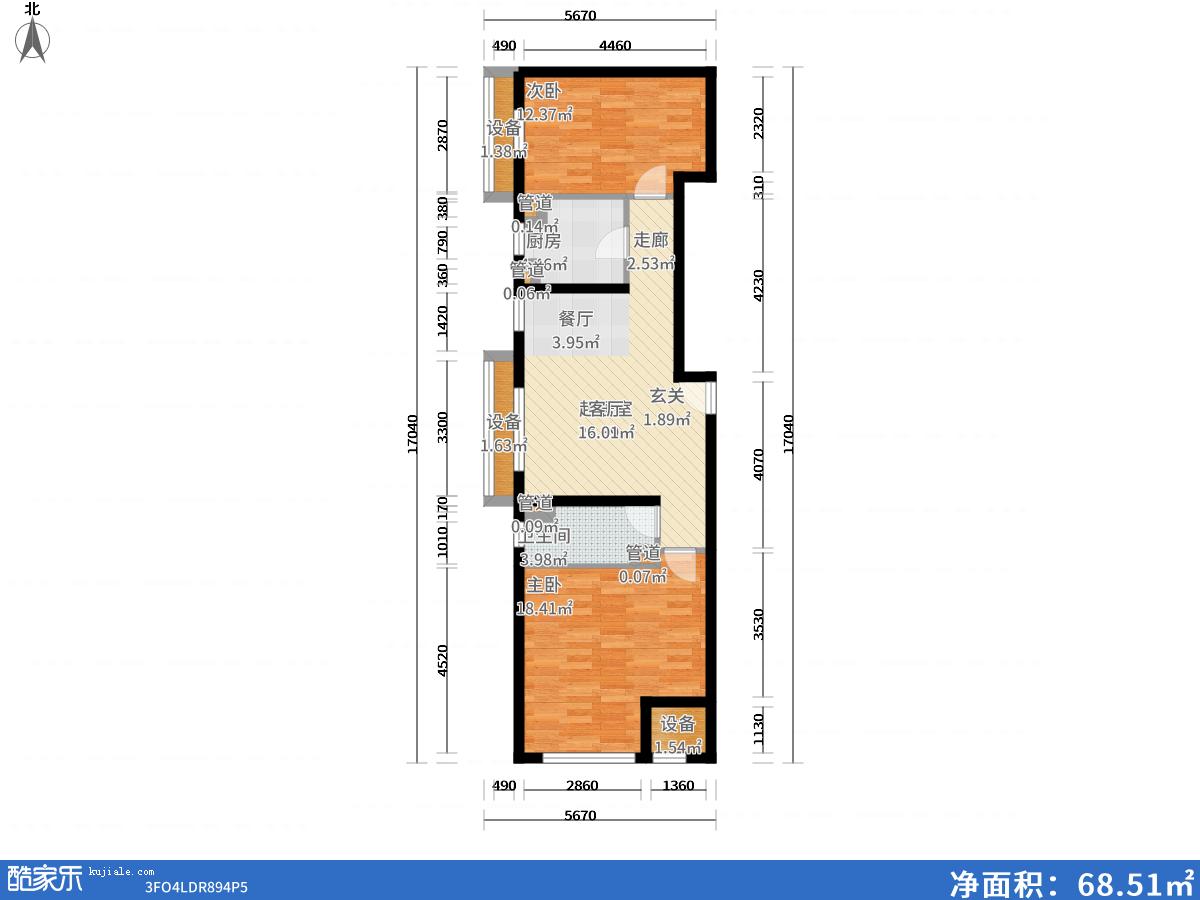 套内面积: 68.51平方米