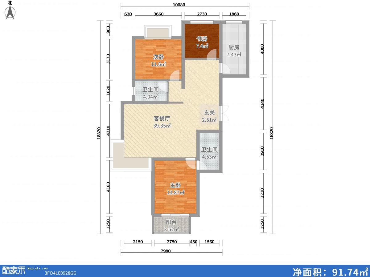 套内面积: 91.74平方米