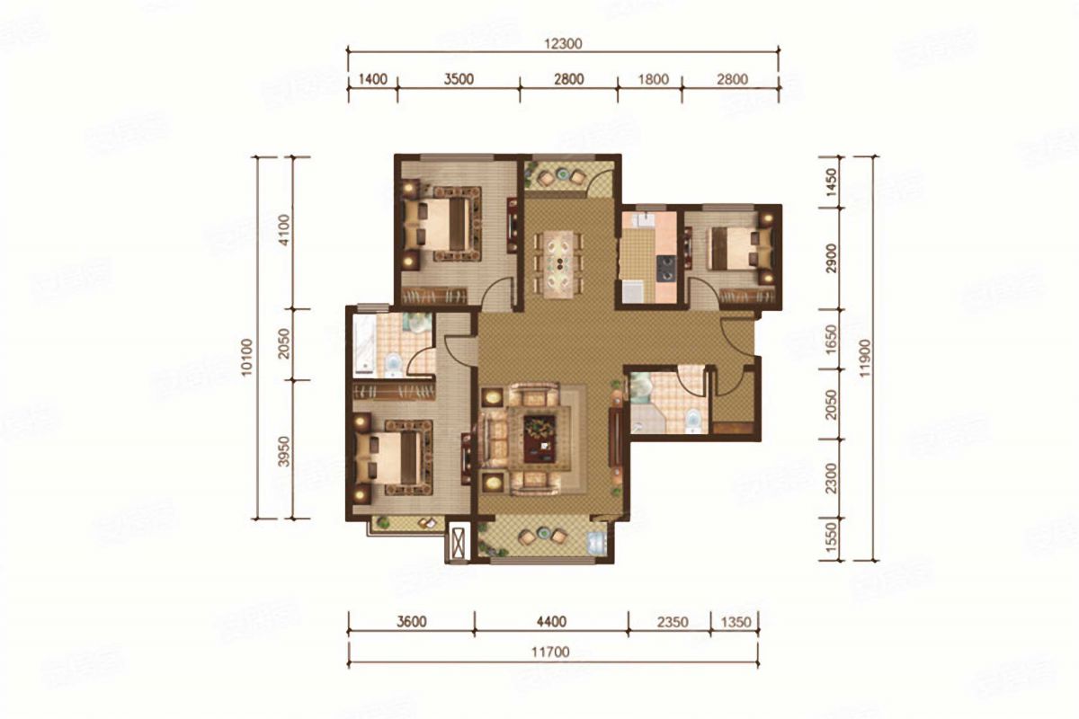 中环悦府C户型户型图【3室2厅2卫建筑面积——约124m2】