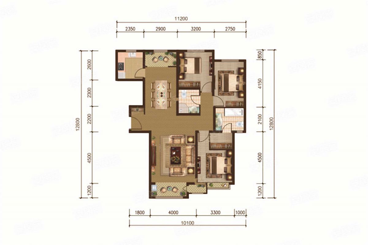 中环悦府E户型户型图【3室2厅2卫建筑面积——约117m2】