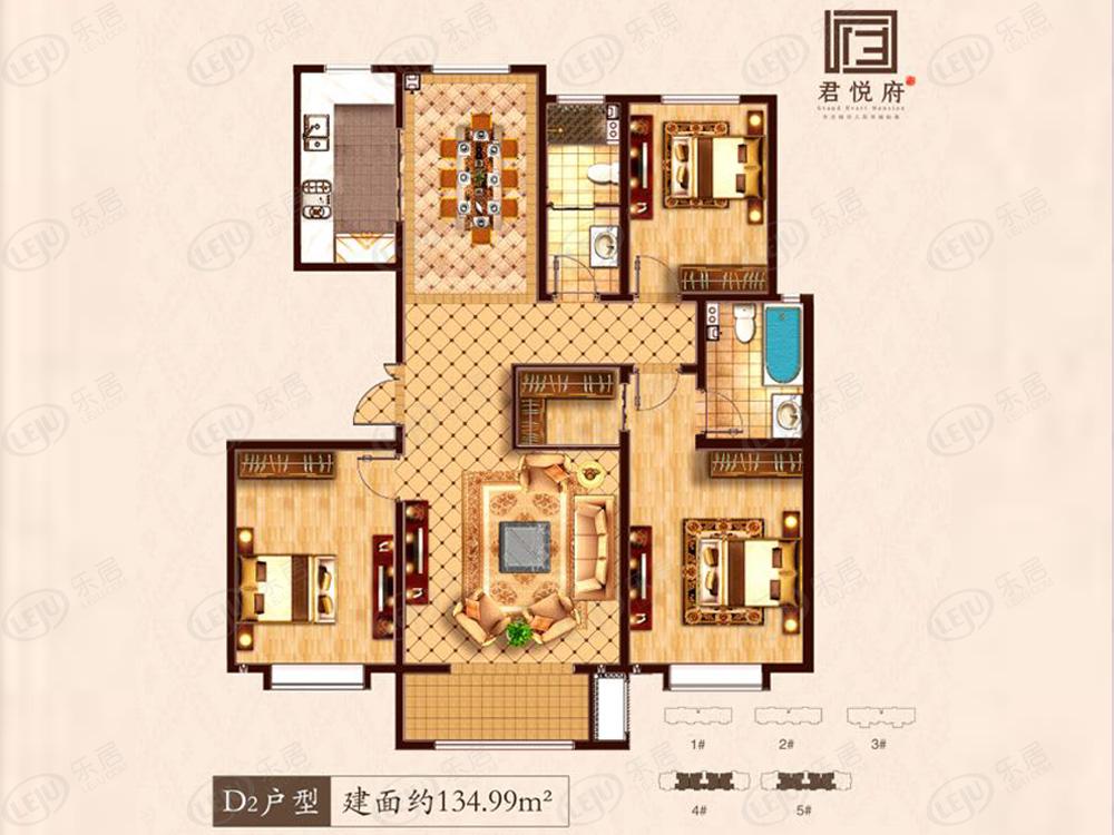 君悦府三室两厅两卫134.99平方米