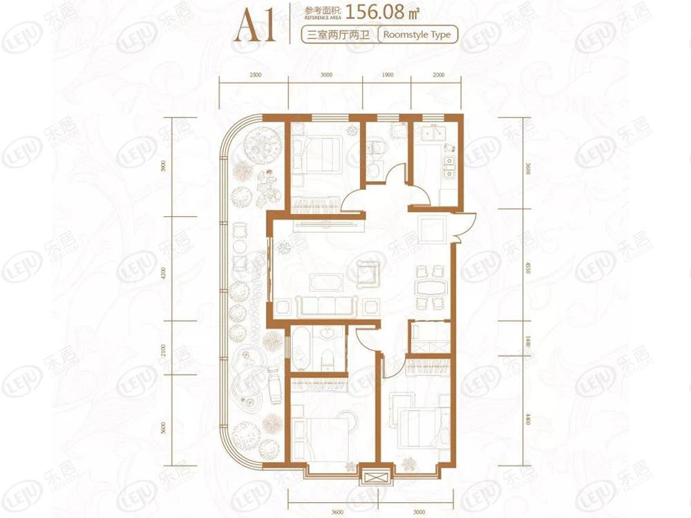 名仕花园三室两厅两卫156.08平方米