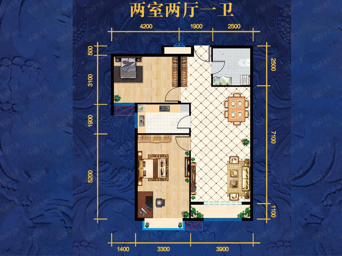 鑫海花园·御苑两室两厅一卫97.84平方米