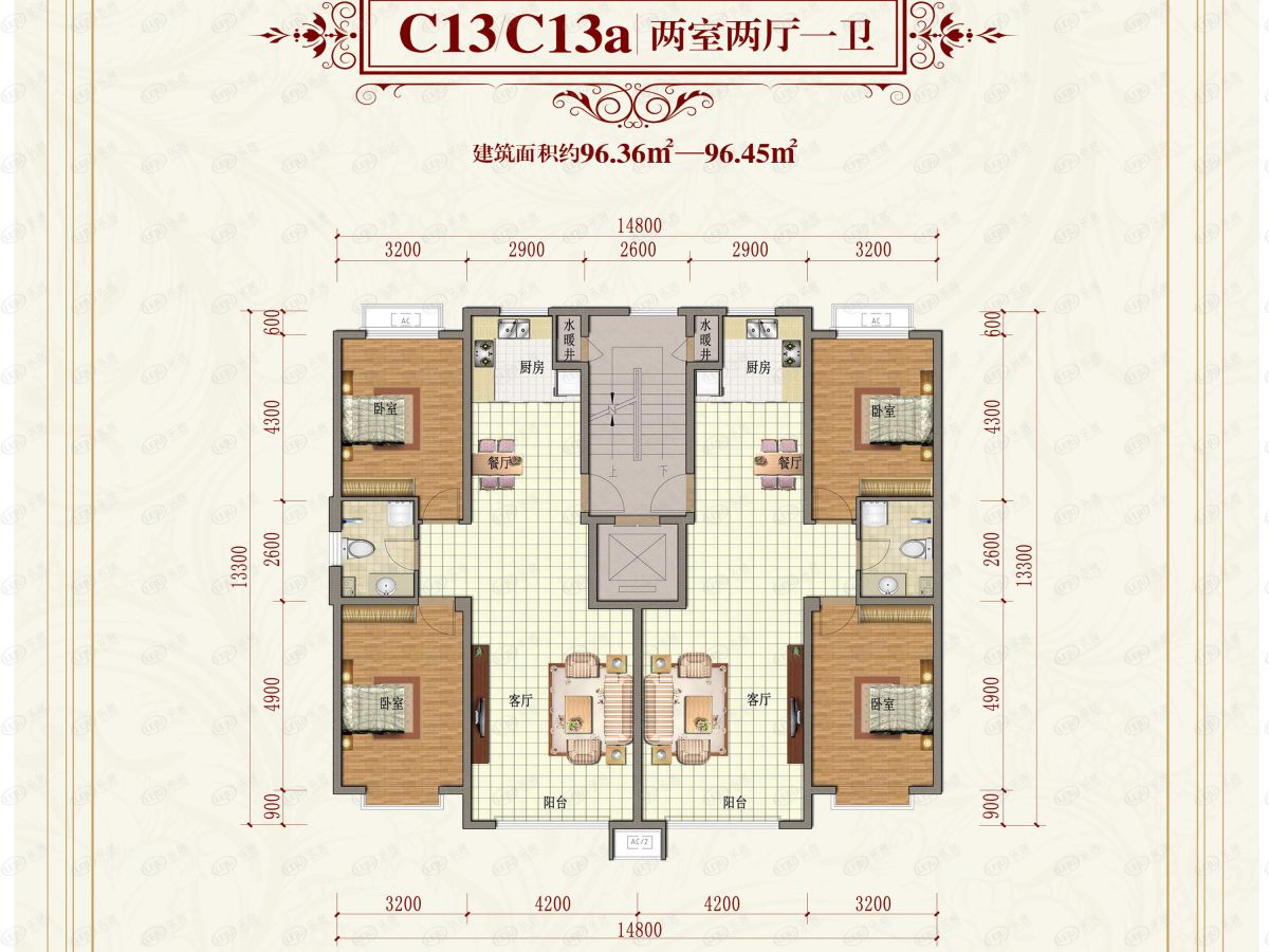 中慧新城两室两厅一卫96.36平方米