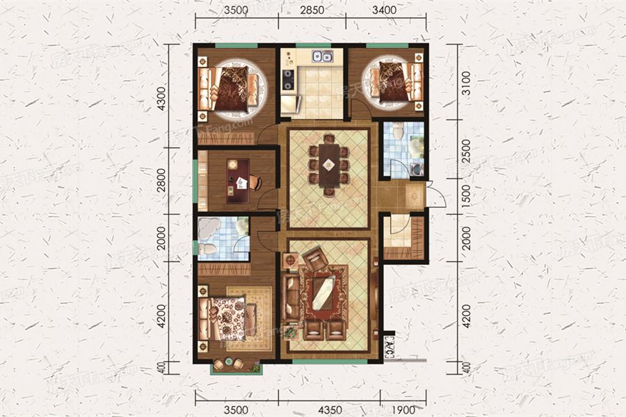各个空间户型方正,方便室内家具布置;整个空间全明通透,采光良好,同时利于居住空间通风;从卧室进卫生间需要穿过餐厅或客厅;卧室厨卫等各个功能区的面积大小都比较合理,居住体验便利,整体舒适度高;公摊高于15%且低于25%,符合住宅公摊正常范围。