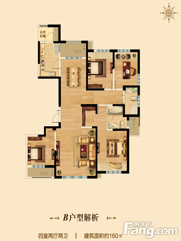 各个空间户型方正,方便室内家具布置;全明通透户型,居住舒适度较高,整个空间采光充足,利于后期居住;整体空间布局合理,能够保证动静分离和居室通风,方便使用;客厅、卧室、卫生间和厨房等主要功能间的尺寸以及比例适中,有利于采光和通风,居住起来舒适、方便;公摊高于15%且低于25%,符合住宅公摊正常范围。