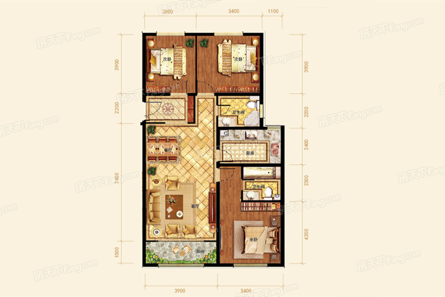 整体户型方正,活动区域开阔,居住舒适度高;整个空间全明通透,采光良好,同时利于居住空间通风;整体空间布局合理,能够保证动静分离和居室通风,方便使用;客厅的面宽进深比不在标准范围内,电视柜和沙发等家具的摆放要仔细考量,以改善客厅舒适度;公摊高于25%。
