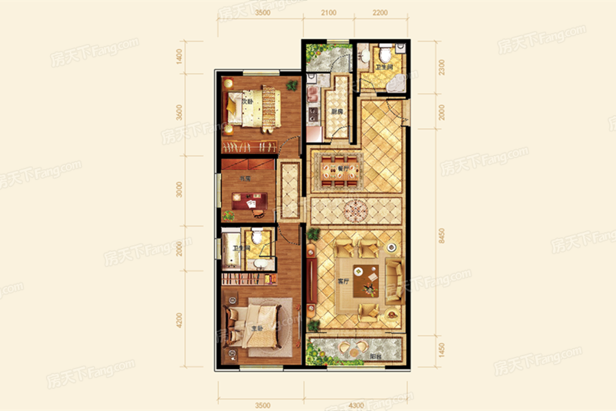 整体户型方正,活动区域开阔,居住舒适度高;卫生间没有对外窗户,可通过加装排风机改善通风除湿;入户门进厨房需要穿过客厅;卫生间门朝向主要活动区域;客厅的面宽进深比不在标准范围内,对区域内采光和通风存在影响;公摊高于25%。