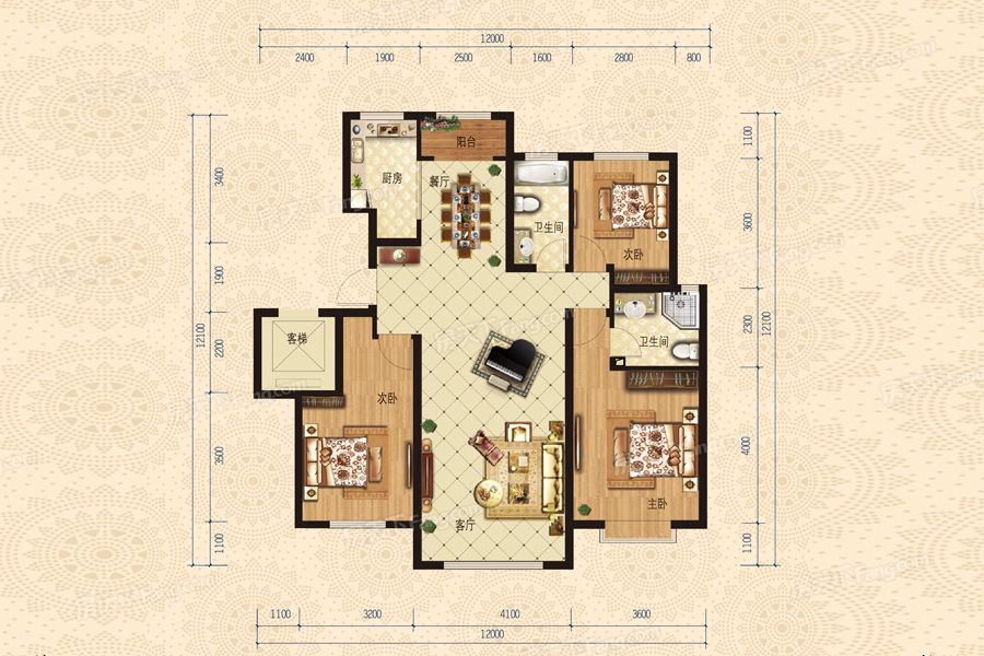 各个空间户型方正,方便室内家具布置;整个空间全明通透,采光良好,同时利于居住空间通风;居室布局合理,通风良好,动静分离,兼顾到了卧室和卫生间的私密性;客厅、卧室、卫生间和厨房等主要功能间的尺寸以及比例适中,有利于采光和通风,居住起来舒适、方便;公摊高于15%且低于25%,符合住宅公摊正常范围。