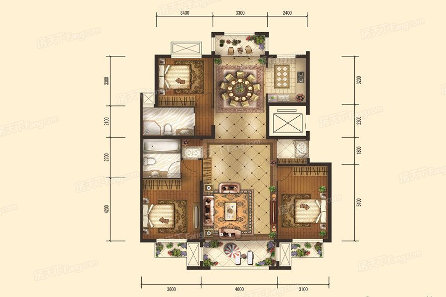 各个空间户型方正,方便室内家具布置;全明通透户型,居住舒适度较高,整个空间采光充足,利于后期居住;整体空间布局合理,能够保证动静分离和居室通风,方便使用;客厅、卧室、卫生间和厨房等主要功能间的尺寸以及比例适中,有利于采光和通风,居住起来舒适、方便;公摊高于15%且低于25%,符合住宅公摊正常范围。