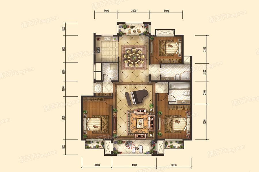 整体户型方正,活动区域开阔,居住舒适度高;全明通透户型,居住舒适度较高,整个空间采光充足,利于后期居住;整体空间布局合理,能够保证动静分离和居室通风,方便使用;客厅、卧室、卫生间和厨房等主要功能间的尺寸以及比例适中,有利于采光和通风,居住起来舒适、方便;公摊高于15%且低于25%,符合住宅公摊正常范围。