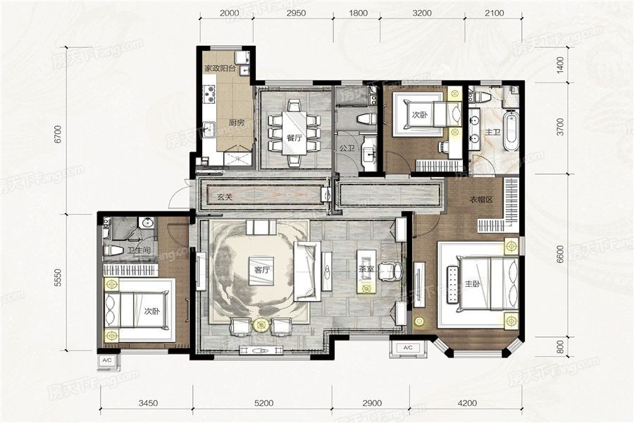 各个空间户型方正,后期空间利用率高;全明通透户型,居住舒适度较高,整个空间采光充足,利于后期居住;整个户型空间布局合理,做到了干湿分离、动静分离,方便后期生活;卧室厨卫等各个功能区的面积大小都比较合理,居住体验便利,整体舒适度高;公摊低于15%,得房率较高。